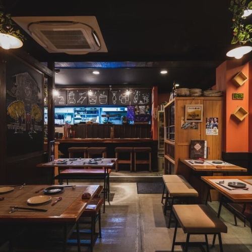 広々した店内はこだわりの照明が壁や床に反射して温かみのある空間となっています!4名様テーブル席やカウンター席など、様々なシーンでお使いいただけます。テーブルレイアウトなども変更可能なので大小宴会にどうぞ!